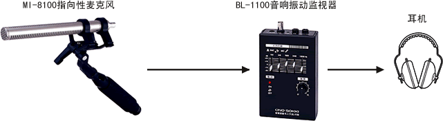 MI-8100是獵槍式指向性麥克風(fēng),能非常靈敏地捕捉聲音,對(duì)于簡(jiǎn)易性音源探測(cè)或檢測(cè)異常噪聲時(shí),去除背景噪聲非常有效。從50 Hz 到 20 kHz具有非常平坦的頻率特性。指向特性非常靈敏,能夠以高的信噪比(S/N)檢測(cè)特定部位發(fā)生的各種噪聲。與音響監(jiān)視器BL-8100組合,能更加明確地測(cè)得所需頻率的聲音。